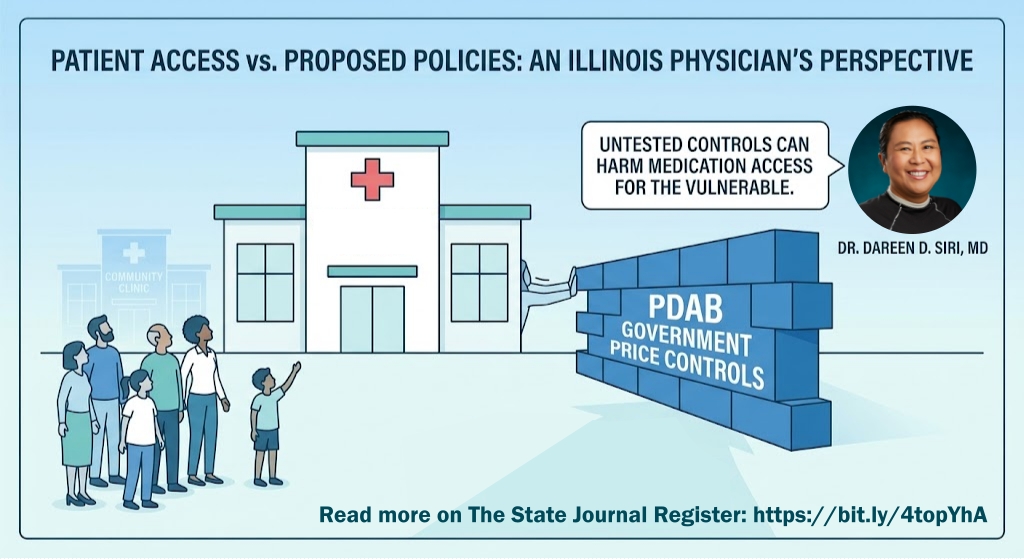 In a recent op-ed for the Springfield State Journal-Register, Dr. Dareen D. Siri shares a critical perspective on the proposed Prescription Drug Affordability Boards (PDABs) in Illinois. While the goal of lowering medication costs is vital, Dr. Siri warns that the current legislative approach could inadvertently jeopardize the community-based care and medication access that patients rely on most.